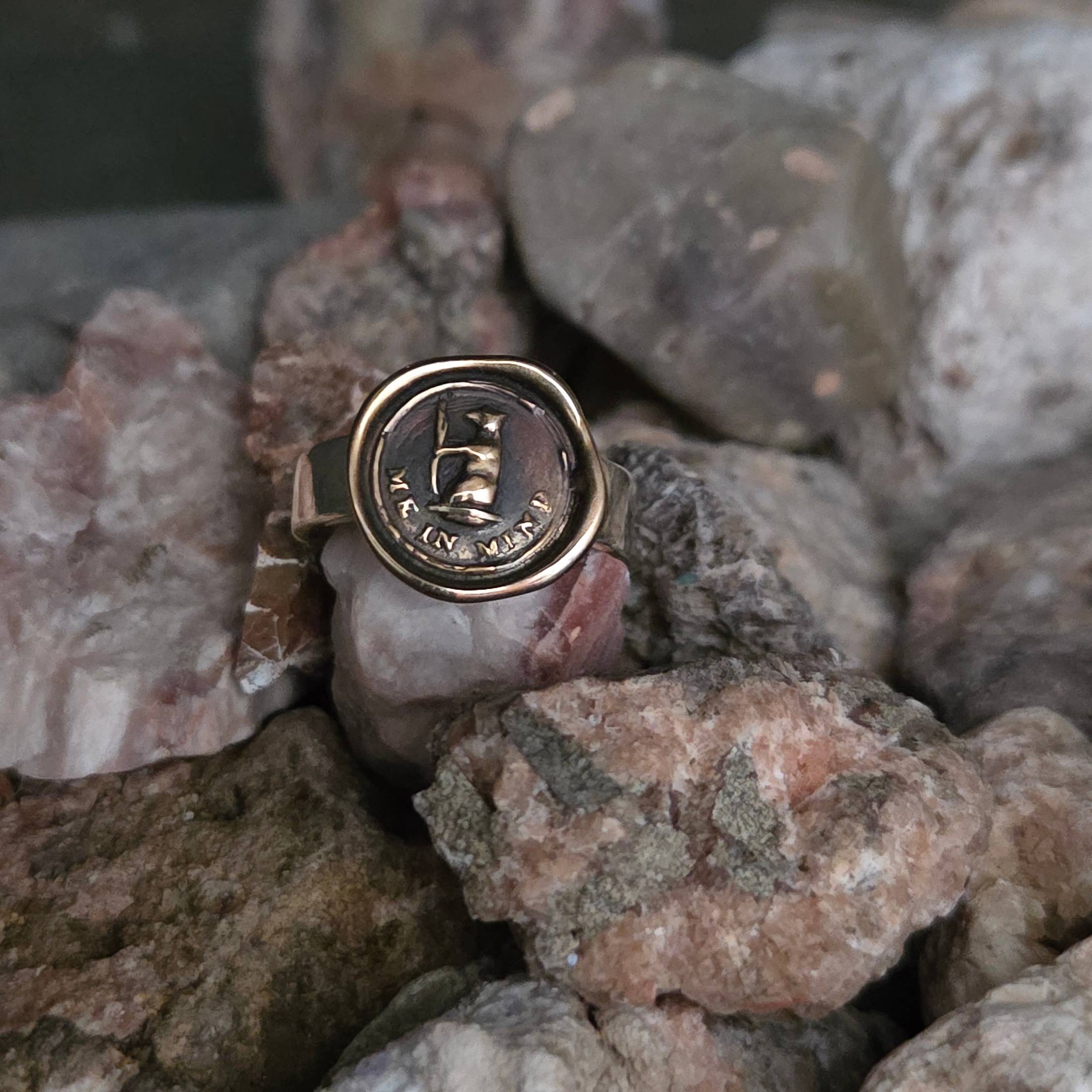 Bear Me In Mind Seal Ring, Bronze on Sterling, Size 4.5