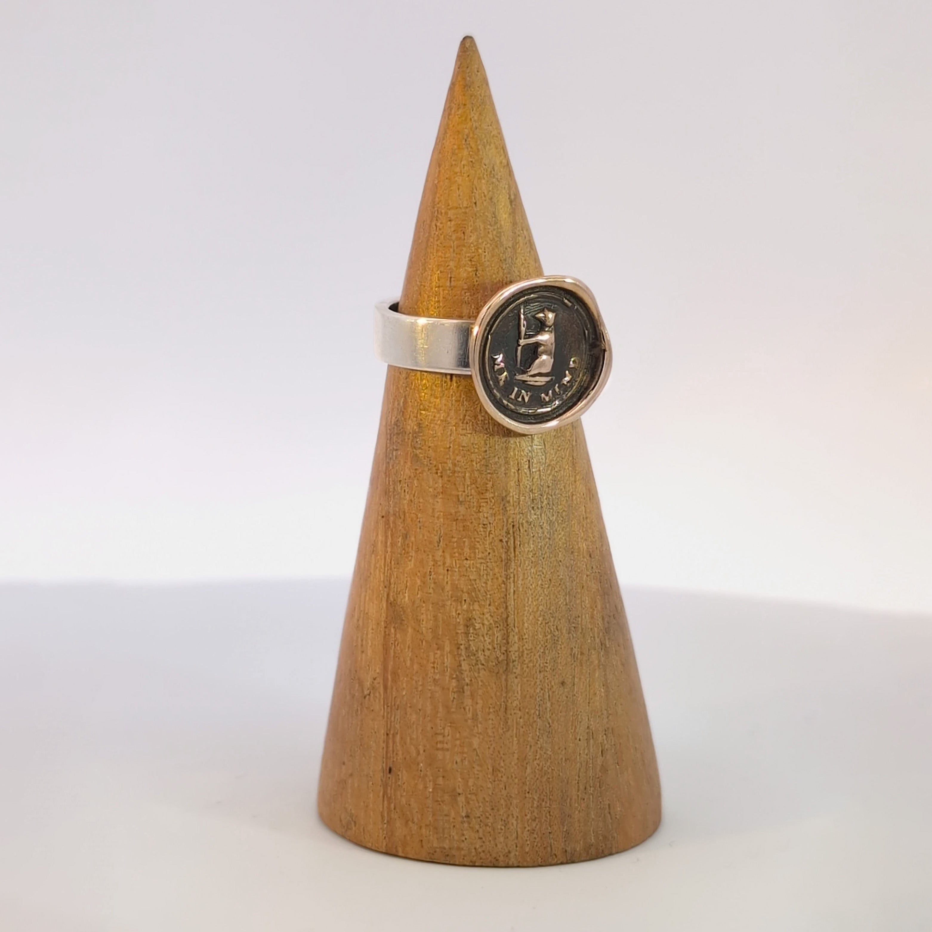 One of a kind: this piece is unique. When it's gone, it's gone. This ring can't be resized.Details Materials: Bronze seal on sterling silver band