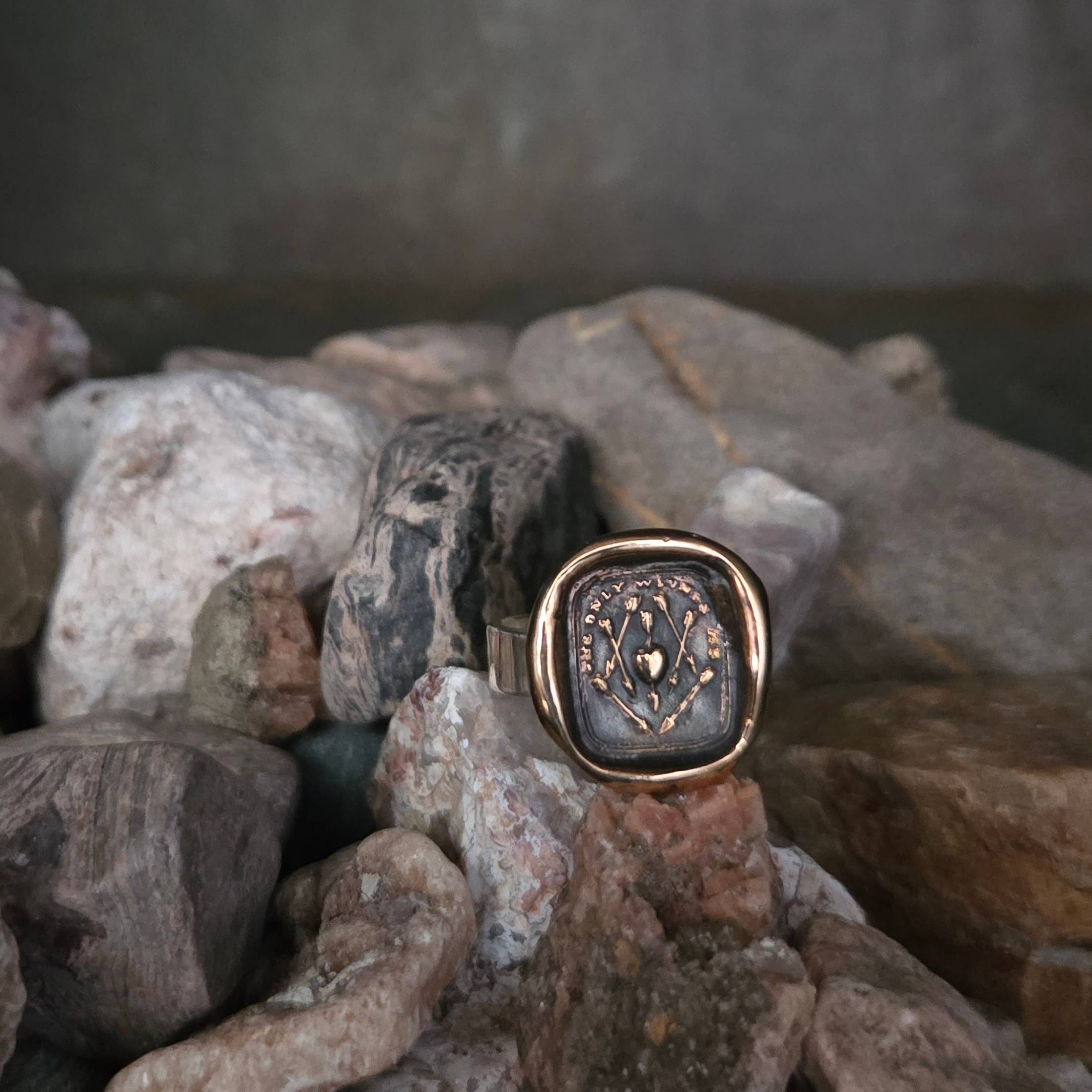 Hearts and Arrows Seal Ring, Bronze on Sterling, Size 8.5