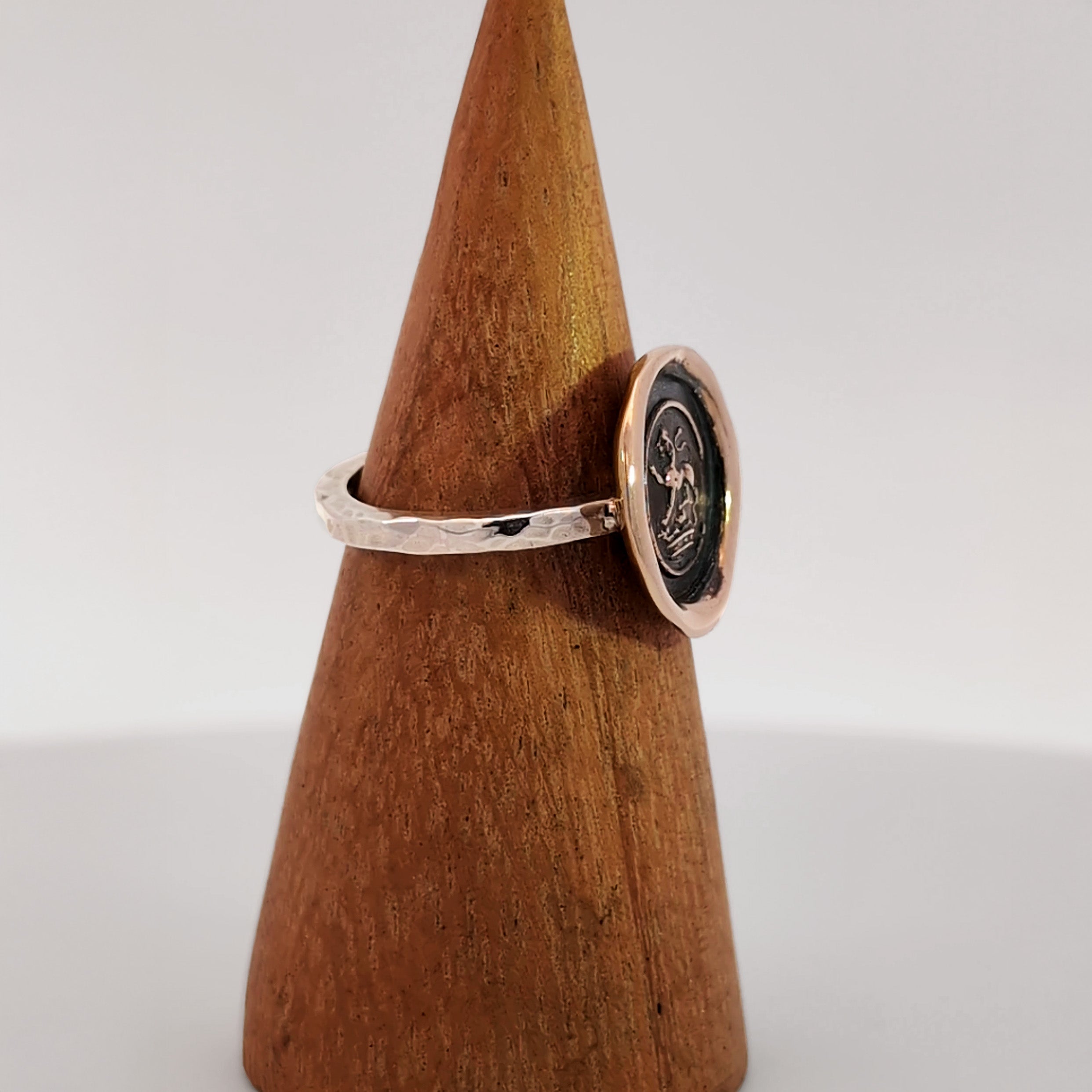 One of a kind: this piece is unique. When it's gone, it's gone. This ring can't be resized.Details Materials: Bronze seal on sterling silver band